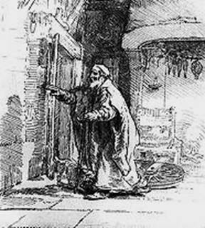 В «Слепом Товие» (1651 г.) легкие штрихи пронизывают пространство, растворяя границы предметов и фигур – все кажется наполненным трепетным скользящим светом, передающим тончайшие нюансы чувств отца, напряженно и взволнованно ожидающего прихода сына, все оттенки робкой, но неистребимой надежды, которая поддерживает жизнь одинокого и беспомощного старика, отгороженного от мира своей слепотой.