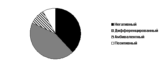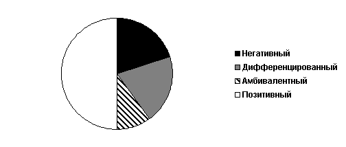 Третий тип отношения можно обозначить как амбивалентный, для которого свойственно наряду с положительными и восторженными оценками и проявление критического отношения к отечественной поп-музыке, проявляющееся в таких характеристиках как «рекламная», «продажная», коммерческая, вульгарная, порой бессодержательная, низкокачественная. Такое представление студентов о поп-музыке выражается в следующих фразах и оценках: «Да, я вижу все отрицательные стороны поп-музыки, но все равно ее люблю» или «Безусловно, сегодня поп-музыка – это цех по выпуску и «раскрутке» своих поп-звезд. Она насквозь коммерческая, но, несмотря на это, я обожаю слушать поп-музыку и люблю только ее». В эту группу вошли большой частью студенты-немузыканты (24%) из выборки «музыканты» – 10%.