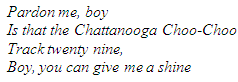 - Чуча — песня Поезд на Чаттанугу ("Chattanooga Choo Choo…") из культовой картины "Серенада солнечной долины".