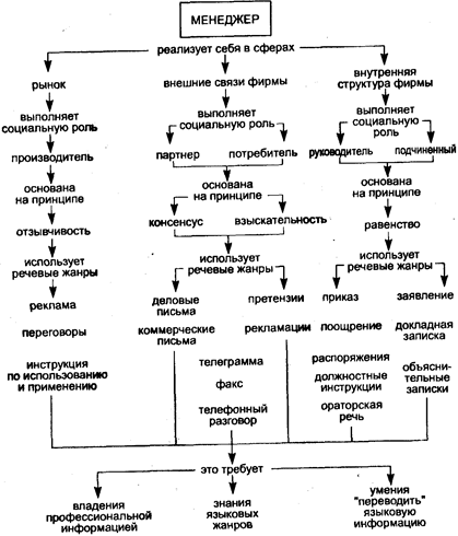 Владение всеми перечисленными жанрами делового общения входит в профессиональную компетенцию менеджера, руководителя. (См. денотатный граф на с.26).