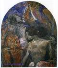 Кульминация киевского периода – эскизы росписей Владимирского собора (1887, акварель и графитный карандаш, преимущественно Киевский музей русского искусства); со времен древней иконописи русская живопись не знала цветовых гамм такой силы обобщения и воздействия. Не только вера и озарение, но и мучительные сомнения проступили тут с исповедальной искренностью, – неудивительно, что эскизы смутили официальную церковь и остались неосуществленными в большом масштабе, на стене.