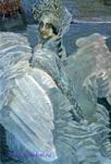 Мерцают бирюзовые, голубые, изумрудные самоцветные камни узорчатого венца-кокошника, и мнится, что это трепетное сияние сливается с отблеском зари на гребнях морских волн и своим призрачным светом словно окутывает тонкие черты бледного лица, заставляет оживать шелестящие складки полувоздушной белой фаты, придерживаемой от дуновения ветра девичьей рукой.