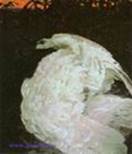 Гармоническое соединение фантастического и реального видим и в картине "Царевна-Лебедь" (1900, ГТГ). "Царевна-Лебедь" - один из самых пленительных, задушенных женских образов, созданных художником. Эта картина, по сути, сценический портрет его жены, Забелы надежды Ивановны. Но сценическая условность преображена натиском врубелевской кисти, претворена в сказочную. На глазах зрителя совершается чудо превращения морского прибоя в крылья Царевны-Лебедь. Неверный свет заката трансформирует реальность, делает ее зыбкой и многозначительной. Перламутровый колорит картины словно порожден музыкой. "Царевна-Лебедь". Глубокий смысл заложен всего в двух словах. Очарование родной природы, гордая и нежная душевность сказочной девушки-птицы.