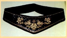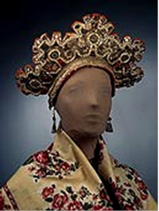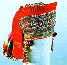 Особенно красочной была вышивка на головных уборах, платках. Головные уборы чрезвычайно разнообразны. Девичьи повязки, венцы, коруны, женские сборники, сороки, кички, кокошники - это лишь небольшая часть множества головных уборов. Шитые золотом и серебром, они надевались к праздничным костюмам и являлись самой нарядной и драгоценной его частью. Особенно дорогим головным убором, доступным наиболее состоятельным семьям, был кокошник. Обычно он выполнялся профессиональной золотошвеей на заказ и, обильно расшитый золотыми и серебряными нитями, жемчугом, перламутром, самоцветами, фольгой, стоил очень дорого. Народ украшал голову так, что даже обделенная красотой женщина становилась прекрасной царевной.