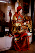 Если невеста происходила из княжеского рода, она должна была одевать плащ-мантию из тяжелой парчи с золотым шитьем.