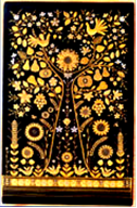 В XVI в. все еще продолжает жить и древняя языческая символика. Она встречается в церковных и в бытовых предметах. Например, женский головной убор - волосник - из погребений цариц в кремлевском Вознесенском монастыре. Это - вязаная шапочка, на очелье которой по красному шелку золотой нитью вышит повторяющийся рисунок - "древо жизни" - со стоящими по бокам "инрогами". Ниже - узкая полоса орнамента из растительных побегов. Единорог считался на Руси символом плодородия, он был также личным знаком Ивана Грозного, на его печатях и др. предметах.