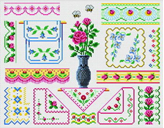 Счётные швы . К счётным швам относятся: крест, косая стёжка, набор, "козлик", полукрест или "роспись", счётная гладь, "косичка" и др. Швы выполняют по счёту нитей ткани. Швы крест, "роспись", гладь могли вышиваться и по рисунку на плотных тканях. Мотивы узоров и приёмы выполнения счётных швов применяли для оформления занавесок, диванных подушек, салфеток, панно, одежды.