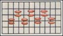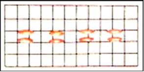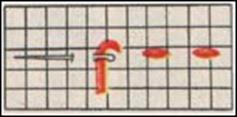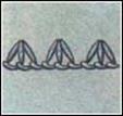 Шов "вперёд иголку" (рис.2). Представляет собой ряд стежков и пропусков одной длины. Нитка закрепляется у правого края ткани, делая стежок 5 мм (5-6 нитей ткани). После закрепления нитки игла вводится в точку второго прокола и протаскивается вместе с петелькой на изнаночную сторону. Пропустив столько же нитей, игла выкалывается на лицевую сторону и делается второй стежок и т.д. Стежки шва и пропуски выполняются одной длины и располагаются в направлении справа налево. По изнаночной стороне ткани стежки такой же длины располагаются между лицевыми стежками. Длина стежка может быть разной. Так в белой глади этим швом обводится контур узора, выполняя стежки длиной от 1 до 2 мм. В счётной вышивке (шов набор) стежки могут иметь длину 3-4 мм, а в узорах, полностью выполняемых этим швом, - 6-8 мм. Шов может выполняться как по счёту нитей, так и по рисованному контуру. Стежки могут располагаться в два (рис.3) и более рядов (рис.4).