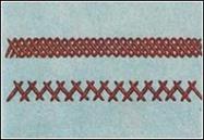 Тамбурный шов мог выполняться в виде зигзагообразной полосы (рис.10 б). В этом шве стежки по изнанке и петельки по лицевой стороне располагались поочерёдно то влево, то вправо от средней линии шва.