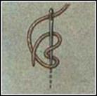 Шов "шнурок" (рис.7 а). Выполняется он в два приёма. Сначала по прямой линии или по контуру узора делается стежки шва "вперёд иголку". Расстояние между стежками должно быть в два раза меньше длины стежка. Затем игла с ниткой (чаще другого цвета) подводится под каждый стежок сверху вниз, не прокалывая ткани. Если иглу с ниткой подводить под стежки то сверху вниз, то снизу вверх, получится другой вид шва (рис.7 б).