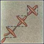 Все нечётные крестики выполняются по схеме, изображённой на рис.16 а, а все чётные, как показано на рис.16 б, при этом все верхние диагональные стежки располагаются в направлении снизу слева вверх направо.