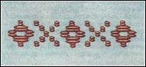 Набор. Наборы бывают горизонтальные и вертикальные. Наборы выполняются только по счёту нитей ткани. Геометрический узор (рис.17 а) выполняется движением иглы с рабочей ниткой по всему узору то слева направо, то справа налево. В соответствии с узором делается стежок, затем пропуск, снова стежок и т.д. Таким образом, набираются нитки ткани до конца узора по принципу шва "вперёд иголку". На изнаночной стороне получается негативный узор (рис.17 б). Вертикальный набор характерен для украинской вышивки.