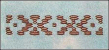 При выполнении ряда крестиков, расположенных через один, на изнаночной стороне получается ряд крестиков, расположенных между лицевыми крестиками (рис.13 д).
