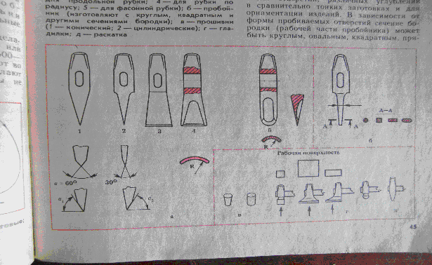 а — насечка по холодному металлу; б — ручники; в — пуансоны
