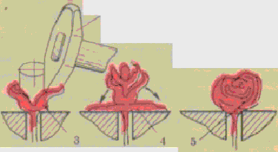 1 — заготовка; 2 — оттяжка стержня; 3 — надрубка лепестков; 4 — расковка лепестков и их формовка; 5—сформованный цветок
