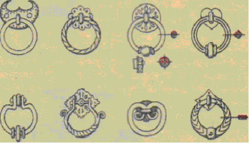 Говоря о применении кованого металла в архитектуре, нельзя не вспомнить о таких деталях, как подвесные замки, которые, исполняя свое прямое и функциональное назначение, являлись также украшением дверей и ворот. Большое искусство проявляли кузнецы и при изготовлении ключей. Язычок ключа прорезался хитроумными пазами и отверстиями, а стержень имел различные утолщения и гравировку. Богаче всего украшалась головка ключа, в рисунок которой вплетались растительные и животные мотивы, фантастические образы, геометрические фигуры, а также звезды, короны и другие атрибуты.