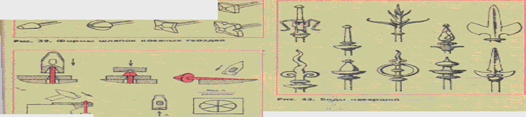 Качественная наковальня издает высокий и чистый звук при легком ударе молотком, а молоток при этом отскакивает со звоном Для мелких работ кузнецы применяют наковальни небольших размеров или специальные наковальни — шпераки (Приложение №7, рис.7 б). Одни шпераки устанавливаются своими четырехгранными хвостовиками в квадратное отверстие наковальни, другие, имеющие удлиненную вертикальную стойку, вбиваются заостренным концом в деревянный чурбан или в землю.