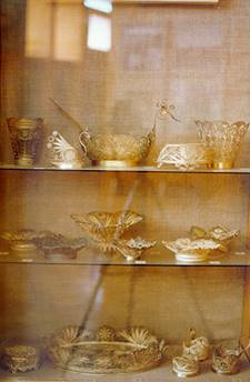 В этом разделе музея , кроме филиграни , так же представлены образцы изделий, сделанных в технике холодной и горячей эмали, их объединяет сходная техника производства . Из уплощенной медной проволоки * скани* скручеваются элементы орнамента геометрической или растительной формы, затем все это приклеивается или припаевается на медной , золотой, серебряной и ,в редких случаях ,латунной основе фоне.