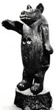 Резьба, роспись. 123 х 64x55. Поступил из ГТГ в 1939 году. Улей в виде медведя вырезан из огромного толстого бревна. Мастер сохранил его форму, поэтому фигура выглядит тяжеловесно, статично, монументально. На груди два летка для пчел. Опущенная лапа словно прикрывает отверстие, из которого вынимали мед. Образ мишки-лакомки передан с юмором.