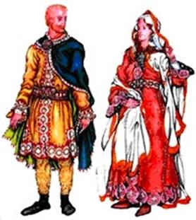Ткани. Льняные ткани использовали для нижней одежды. Из шелка, парчи, бархата шили верхние одежды.