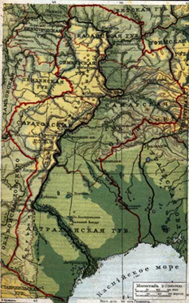 Поволжский край был покорен в половине XVI-го столетия. С этого времени началась его колонизация русскими. Заселение шло гораздо, скорее, в северной лесной половине, чем в южной степной. Кроме переселенцев, водворяемых правительством, сюда стекалось ещё много непокойного элемента – "вольницы" , благодаря которой этот край долгое время не мог мирно развиваться. Здесь развернулись известные бунты Стеньки Разина Пугачева. Большую часть населения в настоящее время составляют великорусы(62%), которые распределены равномерно по всей области; среди них много раскольников. Малороссы стали переселяться уже позднее и потому число их сравнительно невелико, они живут в самарской губернии. С другой стороны, Приволжский край ко времени покорения его русскими имел многочисленное инородческое население, финское и тюркское, к тому же не разрозненное, а объединенное в государства. Это население лишь отчасти слилось с русскими, а в большей части уцелело и составляет теперь ⅓ всего населения области. Самые многочисленные из инородцев – татары, живут во всех губерниях, но больше всего в Казанской.