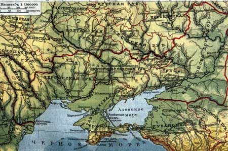 В общем почти вся Новороссия представляет собой равнину, однообразие которой нарушают только балки - широкие с отлогими склонами долины, вероятно русла древних рек, курганы, по местному "могилы" – холмы, насыпанные древними обитателями степей, да овраги, которые здесь не меньше, чем в Чернозёмной области. В северной части Малороссии почва-чернозём, особенно тучный на севере Области Войска Донского, на юге – каштановая и бурая почва, во многих местах пропитанная солью.