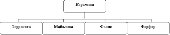 Понятие «художественная керамика» включает все разновидности изделий, выполняемых из глины. В зависимости от основного исходного сырья и дополнительных компонентов получают терракоту, майолику, фаянс, фарфор, имеющие отличия по внешнему виду и по способам декорирования. Терракота имеет светлый красно-коричневый цвет обожженной глины, которую не покрывают глазурями. Она легко воспринимает влагу, поэтому применяется в основном для декоративных изделий.