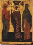 49. Избранные святые: Параскева Пятница, Варвара и Ульяна. Конец XIV в. Третьяковская галерея, Москва