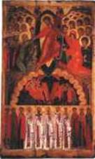 Русские иконы XV в. изображают идеальный небесный мир, райское блаженство праведных, царство Благодати. Если иконы XV в. указывали верующему путь к грядущему Царству Божьему, ступени совершенствования человеческого духа, преодоления препятствий, то теперь, в следующем столетии, этот путь оказывается уже пройденным, идеал — реализовавшимся, грядущее блаженство — наступившим.