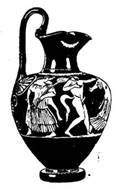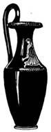 Около середины века получили широкое распространение лекифы с росписью по белому фону, служившие для культовых целей (связанных с погребением умерших). В них нередко рисунок достигал особенной непринужденной легкости (подчас переходившей в небрежность); он наносился черным лаком, обрисовывая основные линии фигуры, и после обжига раскрашивался (почему иногда из-за стершейся краски фигуры выглядят обнаженными). Образцом мастерского рисунка на белом фоне является изображение девушки, приносящей дары умершему, на аттическом лекифе Бостонского музея (илл. 197).