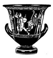 Примерами вазописи высокой классики могут служить такие сделанные во второй половине века рисунки, как «Сатир, качающий на качелях девушку во время весеннего праздника» (илл. 193 а), как «Полиник, протягивающий ожерелье Эрифиле» (так называемая «Ваза из Лечче»; илл. 193 б) и многие другие.