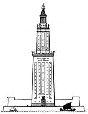 Наиболее прославленным сооружением Александрии был Фаросский маяк, считавшийся одним из семи чудес света и простоявший полторы тысячи лет. Составленный из трех помещенных одна на другой последовательно уменьшавшихся башен, маяк достигал 130 - 140 м в высоту. Его огонь был виден по ночам на расстоянии 100 миль. Грандиозный масштаб этого сооружения - характерная черта эллинистической архитектуры.