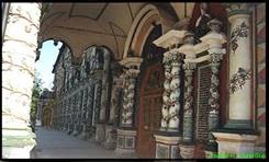Замечательное сооружение начала XVII столетия - комплекс Больничных палат с храмом Зосимы и Савватия, единственной шатровой церковью в ансамбле монастыря. Еще не так давно она была закрыта убогой жилой застройкой и разрушалась. Долго работавший в лавре талантливый архитектор-реставратор И. В. Трофимов вернул былую красоту чудесному красно-белому храму с высоким граненым шатром, украшенным зелеными поливными изразцами. Сейчас это один из живописнейших уголков лавры.