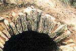 СОХРАНИВШИЙСЯ УЧАСТОК водного канала (слева), покрытый толстым слоем кальциевых отложений. Канал в основном проходил под землей. Та его часть, где текла вода, имела квадратное сечение (со стороной 1,2 м). Общая высота канала, вместе со сводом, – 1,8 м, достаточная для того, чтобы рабочие, обслуживавшие канал, могли стоять в нем в полный рост. В местах выхода водовода на поверхность, например на Пон-дю-Гаре (справа), стены были выше 1,2 м, а вместо свода использовали каменные плиты. | ![]() |