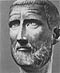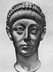 Не менее интересен и датирующийся более поздним временем – около середины IV века – портретный бюст в Национальном музее в Риме. В нем видят портрет сына Константина I – Константина II (337 – [с.94] 361 гг. н.э.). По яркости индивидуальной характеристики изображенного он примыкает к портрету в Копенгагене. Сильно вытянутое лицо с длинным костистым носом, выступающим подбородком, близко посаженными глазами и оттопыренными ушами поражает своей некрасивостью. Чуть загнутые на концах пряди волос низко спадают на лоб. Такая прическа характерна для послеконстантиновских портретов. Пристальный взгляд узких глаз, смотрящих из-под нависающих бровей, плотно сжатые губы придают твердость и значительность этому лицу. Это один из последних позднеримских портретов, сохраняющих еще черты реалистической характеристики изображаемого лица.