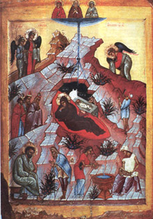 Отдельные образцы ее относятся к XII веку, а наиболее полное развитие она получила в XV веке. Композиционный строй икон этого периода прост и выразителен, изображение хорошо вписывается в плоскость иконы. Отдельные элементы композиции равномерно распределены и удачно согласованы между собой, имеют красивый абрис. Мастера Новгородской школы часто изображали фигуры, горки, деревья симметрично, что создает впечатление завершенности композиции. Эта симметричность разбивалась различными деталями. Часто композиция иконы строилась ярусами, изображения располагались друг над другом. Очень красивы в новгородском письме горки. Они писались крупными объемами с ярко выраженными площадками, которые принято называть "лещадками". Лещадки, в свою очередь, разбиваются мелкими "кремешками". У подножья горки, как правило, изображалась так называемая пещера, т.е. темное углубление. По горке писались причудливые травы и другая растительность. Вода в новгородской иконописи раскрывалась синим цветом, по которому шла роспись светлыми волнообразным линиями. Особо следует отметить так называемое "палатное письмо". Палаты, yсловная архитектура, очень красивы по силуэту. Они окрашивались в мягкие сдержанные тона. Отдельные элементы композиции - окна, двери, занавески, колонки - покрывались плотным: сочными тонами киновари, кармин зелени, умбры, что создавало очень сильную цветовую гамму. В палатном письме активно использовалась poспись. Стены, наличники украшались орнаментальными мотивами. Палаты обильно насыщались элементами малой архитектуры - столами, сиденьями, подножиями, подставками, пepекидными занавесями, которые на языке иконописцев назывались "ВЕЛУМОМ" (ткань).