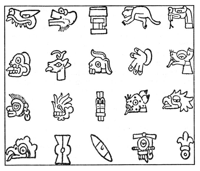 с резными изображениями, обозначающими годы и дни. В центральной части диска изображен лик бога Солнца Тонатиу. В Камне Солнца нашли символическое скульптурное воплощение представления ацтеков о времени. Камень Солнца найден в 1790 в г. Мехико, а сейчас хранится в музее антропологии. Ацтекский календарь (calendario azteca) - система летоисчисления у ацтеков, имел черты, сходные с календарем майя. Основу ацтекского календаря составлял 52-летний цикл - сочетание 260-дневной ритуальной последовательности (так называемого священного периода или тональпоуалли), состоявшей из комбинации недельного (13 дней) и месячного (20 дней, обозначались иероглифами и числами) циклов, с солнечным или 365-дневным годом (18-20-дневных месяцев и 5 так называемых несчастливых дней). Ацтекский календарь был тесно связан с религиозным культом. Каждая неделя, дни месяца, часы дня и ночи были посвящены различным божествам. Большое ритуальное значение имел обряд "нового огня", совершающийся по истечении 52-летних циклов.