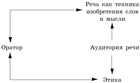 Цицерон--- завершение античной ораторской теории и практики, ее высшая точка. Поэтому им может быть завершено понимание сути риторики в античности и сути речевой практики. На основании изложенного можно представить следующий ряд понятий.