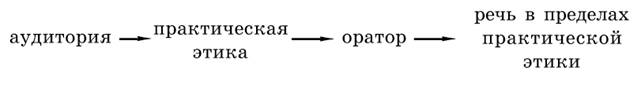 Согласно Горгию, аудитория навязывает оратору практическую этику, которую он воплощает в речи (схема 1.2).
