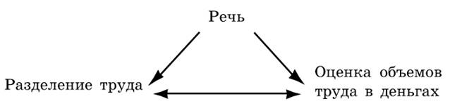 Речь является инициатором и регулятором разделения труда и справедливой оценки объемов труда.