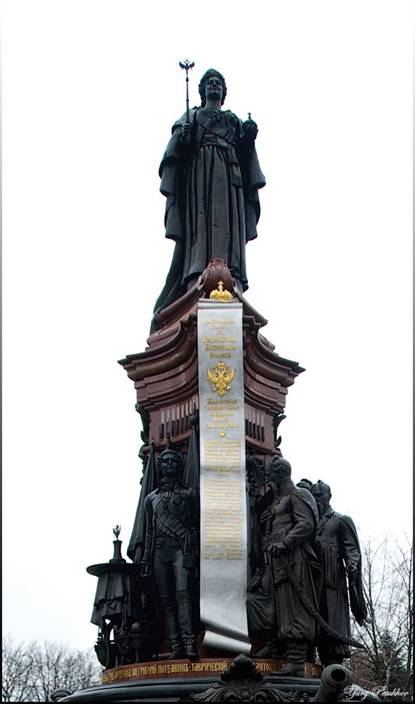 Проект памятника Екатерине II стал последним детищем М.О. Микешина, скоропостижно скончавшегося в 1896 г. В том же 1896 г., в дни празднования Кубанским казачьим войском своего 200-летнего юбилея, состоялась торжественная закладка памятника. Средства на его постройку - 143 тысячи рублей - были выделены войском (2, с. 209).