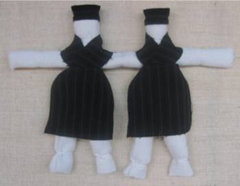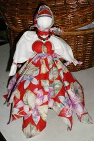 , которые изготавливались очень просто. Туловище – кусок ткани, закрученный вокруг своей оси и скреплённый ниткой. Таким же способом изготовлены руки и, наконец, небольшой шарик-голова с помощью нитки прикреплённый к туловищу.