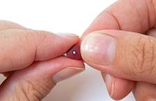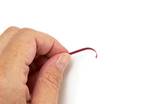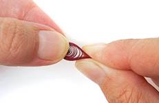 2. Оттяни с нажимом конец полоски двумя пальцами другой руки, проводя по нему ногтем так, чтобы конец немного изогнулся.