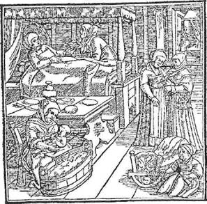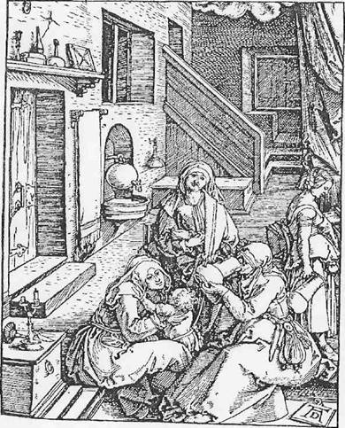 Главным источником тепла был открытый огонь, на нем же стряпали. В очаге мог встать в полный рост мужчина. Горящие поленья лежали на железных подставах, форма которых не менялась на протяжении двух столетий. Изобретение дымохода где-то к концу XIII века стало, наверное, самым большим достижением домашнего прогресса в Европе, так как позволило даже бедным семьям готовить еду дома, не прибегая к услугам общих булочных. Особым вкладом эпохи Возрождения в домашнее хозяйство было создание закрытой кухонной плиты. Ее придумали в Германии, а затем она распространилась по всему континенту, принеся в дома средство сохранения тепла, то есть экономного расходования топлива. Внутри домов было темновато. Стекло для окон стали использовать уже с начала XIII века, но даже в XVI стеклодувы не шли дальше производства небольших мутноватых пластин. Чтобы застеклить ими большие оконные проемы, их требовалось вставить в свинцовые полосы, что создавало красивые узоры, но уменьшало поток проходящего цвета. Однако даже при таком ограничении север Европы обгонял юг. В Италии долгие месяцы прекрасной погоды делали ненужными дорогие большие и плоские стекла. Оконные проемы закрывали ставнями, часто затягивали богатыми тканями. Зимой в дом проникало очень мало света, потому что надо было либо терпеть холод, либо запирать ставни. На севере полы обычно покрывали раскиданным тростником. Это делалось на протяжении столетий. Он был дешев, хорошо впитывал влагу, служил грубой теплоизоляцией, и... в нем отлично разводились всякие паразиты. Несмотря на всеобщее пренебрежение гигиеной, большинство домов могло похвастаться баней, точнее, лоханью для мытья, которую обычно ставили в спальне. Часто ею пользовались два человека одновременно, чтобы сберечь горячую воду. Единственным доступным топливом в большинстве городов были дрова. Средневековая привычка мыться в общественных банях совершенно вышла из обихода, видимо из-за боязни заразы. Домовладелец поэтому должен был сам заботиться о своей бане и дровах для ее нагрева, что в большинстве городов оказывалось дорогим удовольствием.