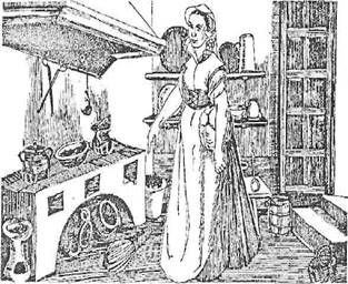 Такая дверь способна была выдержать и выдерживала при необходимости прямую атаку. Каждый человек старался защитить себя и свое имущество. Дверь открывалась сразу в главную комнату, а внутренность дома — видно с первого взгляда — представляла собой единый зал, разделенный на более мелкие помещения деревянными перегородками. Тут не было никакой возможности, да и нужды в личном уединении, какой-то частной жизни. Комнаты примыкали непосредственно друг к другу, — съедающий пространство коридор можно было использовать лишь в очень больших зданиях. Спальня одновременно служила гостиной, это было общепринято, а члены семьи или даже гости небрежно ходили вокруг постели, пустой или занятой. В богатых домах кровать была массивным сооружением, почти маленькой комнатой. Вошедшее в общее употребление в XVI веке ложе с балдахином стало существенным шагом вперед по сравнению с громоздкими и высокими, открытыми со всех сторон кроватями прежних дней.