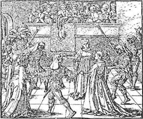 Дама кладет руку ему на плечо, и таким манером они кружатся по комнате. У мужчин свои места, отдельные от дам, и вместе они не смешиваются». По всей вероятности, именно участие дам в придворных празднествах смягчило нравы.