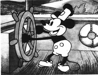 После "потери" кролика Освальда, а с ним и денег, Уолт Дисней отправляется к брату Рою в Лос-Анжелес. Туда же затем переезжает и Юб Айверкс. В 1927 году, как раз накануне появления звукового кино, Дисней и Айверкс придумали нового героя - неунывающего, озорного мышонка Микки, Микки Мауса. Два первых фильма с Микки появились одновременно с первым звуковым кинофильмом "Певец джаза". Дисней сразу оценил значение звука для рисованного кино и быстро создал третий фильм с Микки под названием "Пароход Уилли", с голосами, шумами и музыкой. Этот фильм, показанный публике в 1928 году, сразу стал сенсацией.