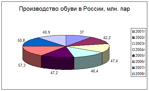 Сегодня 12 % потребительского рынка приходится на одежду и обувь. Россияне в год потребляют примерно 220 млн. пар. Из них 40 млн. производится в России, ещё столько же составляет официальный импорт. При этом считается положительным то, что ежегодно объём продаж на российском рынке обуви растёт. НО что происходит реально? Рост продаж в основном увеличивается за счёт низкокачественной китайской продукции. Она дешёвая, зато носится в два раза меньше. И потребители вынуждены ходить в магазин или на рынок за ботинками в два раза чаще.