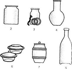 2-для варенья; 3-для домашнего консервирования; 4-для молока; 6-кастрюли; 7-бочонок с крышкой; 8-бутылка хозяйственная