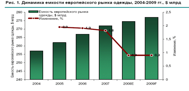 Рынок одежды в нашей стране считается перспективным и привлекательным. Несмотря на его постепенное насыщение и замедление темпов прироста, он растёт достаточно быстро. В то время как в Европе продажи растут в среднем на 5% в год, в России они по итогам 2008 года выросли на 10,6% в рублях.